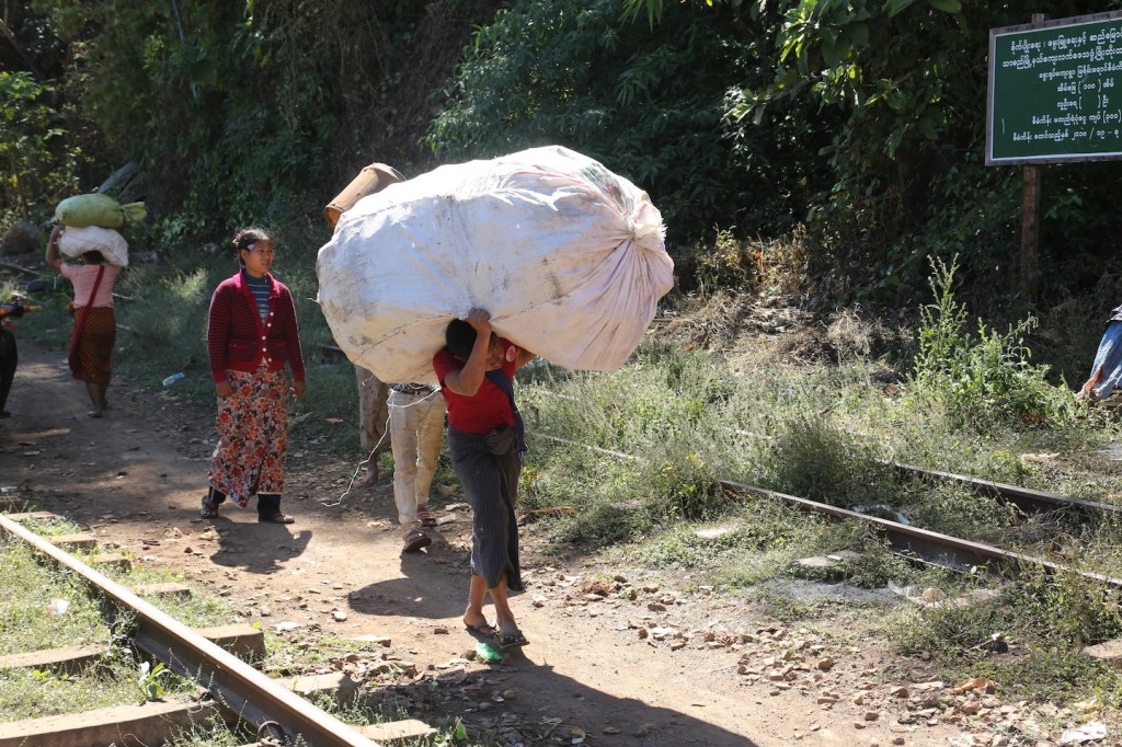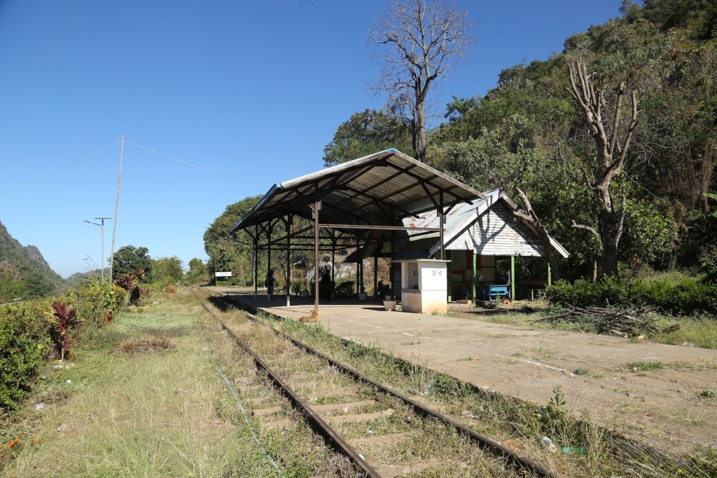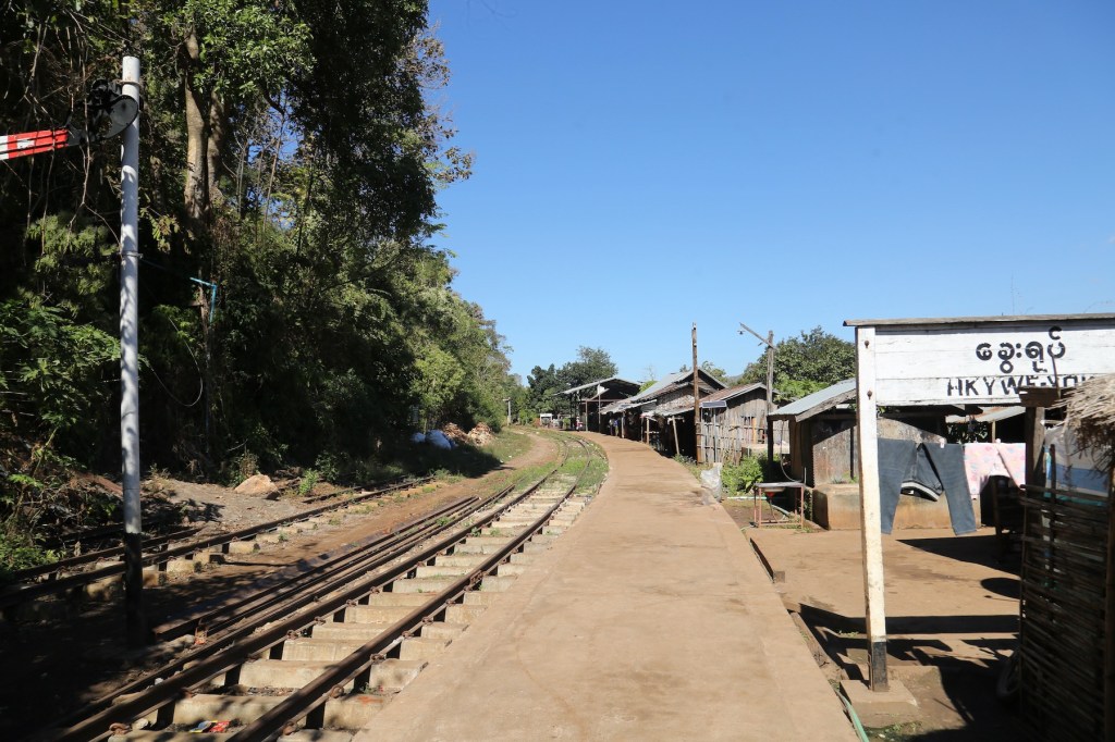 ဆင်တောင် ဘူတာက ၃၉ ၃၄ ပေ၊ ခွေးရုပ်ဘူတာက ၃၀၃၁ ပေ ဆိုတော့ လမ်းက အဆင်းလမ်း သက်သက်ပဲ။ ခွေးရုပ်ဘူတာအထိ တစ်နာရီကျော်လေ ျှာက်ရတယ်။ ခွေးရုပ်ဘူတာတော့ ရထား ခရီးစဉ်ရှိတဲ့နေ့ဖြစ်လို့ အသက်ဝင်နေတယ်။ ဒါပေမယ့် အရင်အခြေအနေလို မဟုတ် တော့ဘူး။ ထမင်းရောင်းသူတစ်ယောက် ၊ အကြော်သည်တစ်ယောက်ပဲ ရှိတယ်။ ပူရီ ဆိုင်ကတော့ ရွာထဲကလူတွေအတွက်ပဲ လုပ်ရောင်းတော့ ကျွန်တော်ရောက်တဲ့အချိန်မှာ ကုန်ပြီ။ ဘူတာကနေ တင်မယ့် ကုန် ကလည်း ပလတ်စတစ်အဟောင်းတွေ၊ သံထည်အတိုအစတွေထည့်ထားတဲ့ အိတ်တွေပဲ ရှိတယ်။ သားအမိသုံးယောက် ဆင်တောင်၊ ခွေးရုပ် နဲ့လယ်ပြင် ဘူတာ ပတ်ဝန်းကျင်မှာလိုက်ကောက်ထား တာတဲ့။ ရထားနဲ့လိုက်မယ့် ခရီးသည်ကလည်း သုံးလေးယောက်ပဲရှိတယ်။ နေ့စဉ်ရထားမလာ နိုင်တော့ လူတွေက ဆိုင်ကယ်အားကိုးပြီး သွားနေ ကြပြီ။