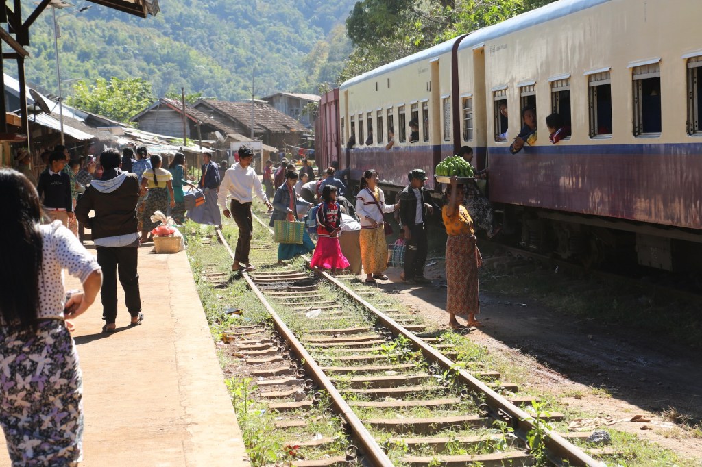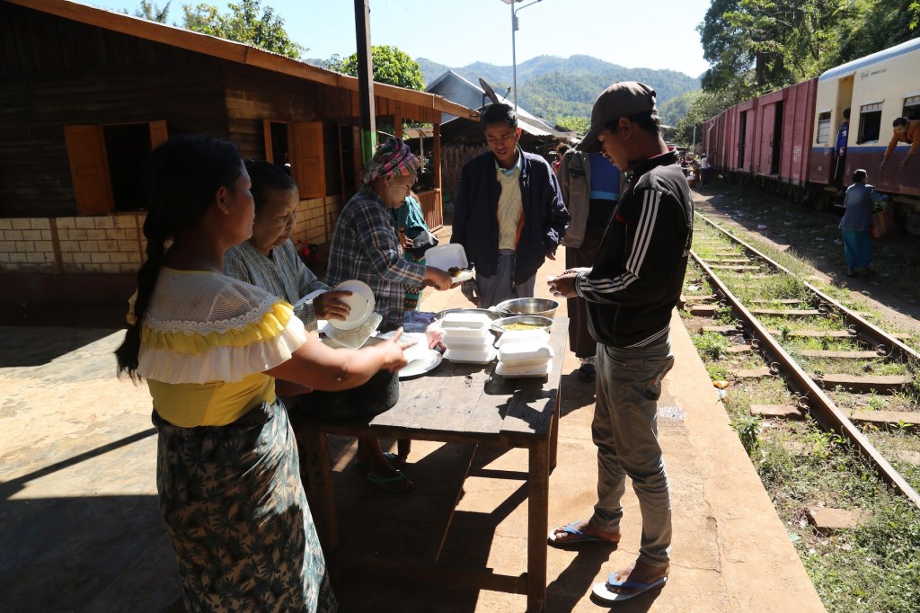ရထားမလာခင် ထမင်းဝယ်စားတယ်။ ပဲဟင်းရည်၊ ကြက်သားဟင်း၊ နှမ်းဖတ်ချဉ် ၊ ငြုပ်သီး တောင့် ပွကြော်၊ တစ်ပွဲ တစ်ထောင်။ အရင်လို ရထားပေါ်က ပြေးဆင်း၊ ဆိုင်မှာတိုးဝှေ့ဝယ် ပြီး စားရတာ မဟုတ်တော့ တစ်ခုခု လိုနေသလိုပဲ။ ထမင်းရောင်းတဲ့ အမျိုးသမီးကြီးနာမည်က ဒေါ်မိုးဆွေ တဲ့။ သူလည်း တစ်ပတ်မှ နှစ်ရက်ပဲ ထမင်းရောင်းနေရတာပျော်ပုံမရဘူး။ အခုကာလကတော့ မပျော် နိုင်ခဲ့တာ ကြာပါပြီ ဆိုတဲ့သူက အများစုပါပဲ။ ၂၀၂၀ မှာ လူချင်းတွေ့ရင် “နေကောင်းရဲ့လား” မေးရ တယ်။ ၂၀၂၁ မှာတော့ “အခြေအနေကောင်းရဲ့လား” မေးရတယ်။ ၂၀၂၂ မှာ လူချင်း တွေ့ရင် မချိပြုံး ပြုံးပြရတဲ့ အဖြစ်မရောက်ပါစေနဲ့လို့ ဆုတောင်းနေရတာပဲ။