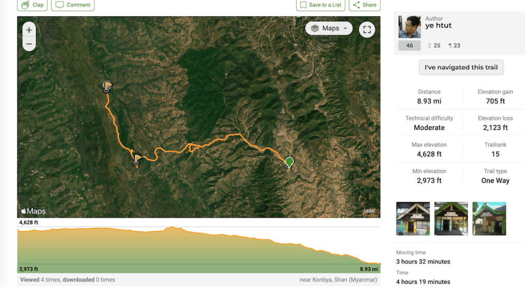 ကလောကနေ မြင်းဒိုက်ဘူတာအထိ ကားနဲ့ သွားတယ်။ မြင်းဒိုက်ဘူတာကစပြီး ရထားလမ်း အတိုင်းလေ ျှာက်တယ်။ မြင်းဒိုက်ဘူတာက ပင်လယ်ရေမျက်နှာပြင်အထက် ၄၄၅၇ ပေရှိတယ်။ မြင်းဒိုက်ဘူတာကနေ အထက်ဆန်ရင် ကလော၊ အောက်စုန်ရင် ဆင်တောင်ဘူတာ။ ကျွန်တော်တို့ ငယ်စဉ်က မင်းသားကြီး ဦးအောင်လွင်ရဲ့ “ ကလောအလွန်တစ်ဘူတာ” ဆိုတဲ့ လိ ျှု့ဝှက်သည်းဖိုကား ပြတော့ ကလော အလွန်တစ်ဘူတာ ဆိုတာ မြင်းဒိုက်လား၊ အောင်ပန်းလားဆိုပြီး ငြင်းခဲ့ဖူးတယ်။ အခုလည်း ကျွန်တော်က ကလောအလွန် တစ်ဘူတာ ကနေ ဆင်တောင်ကို ခြေလျင်ခရီးနှင်မှာဖြစ်ပါတယ်။