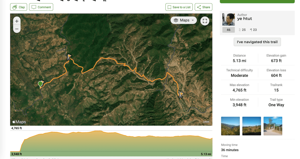 ကျွန်တော့်ခရီးစဉ်မှာ ခွေးရုပ်ဘူတာကနေ အပြန်အခရီးမှာ ဆင်တောင်ကို ခြေလျင်ပြန်သွားခဲ့ ရတယ်။ ဆင်တောင်ရောက်တဲ့အခါမှာတော့ ကားငှားပြီး မြင်းဒိုက်ဘူတာကို ပြန်ခဲ့တယ်။