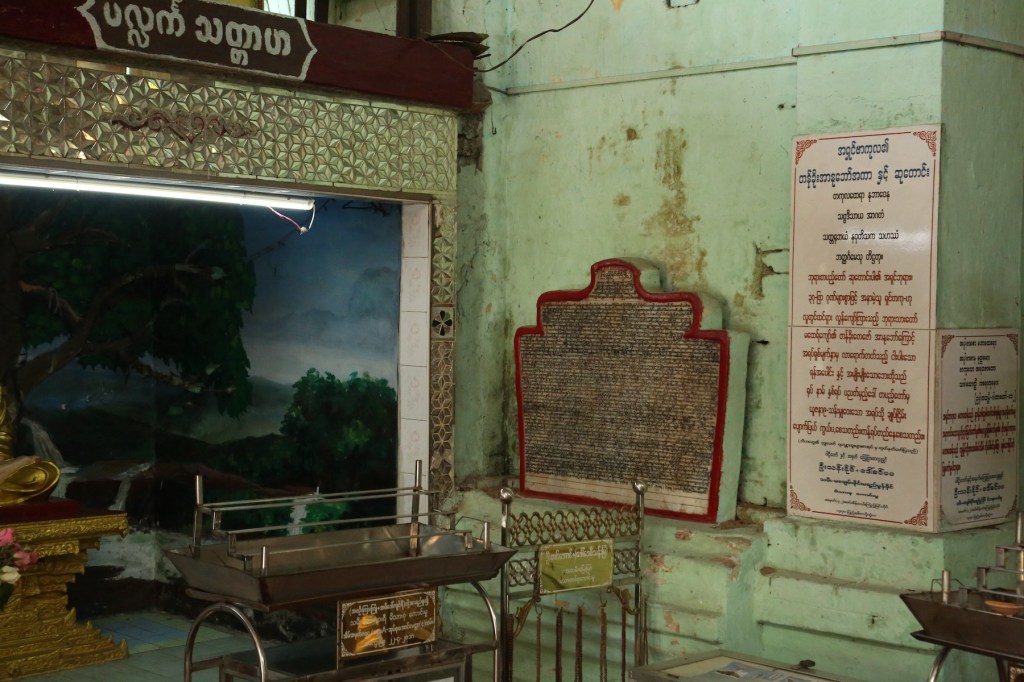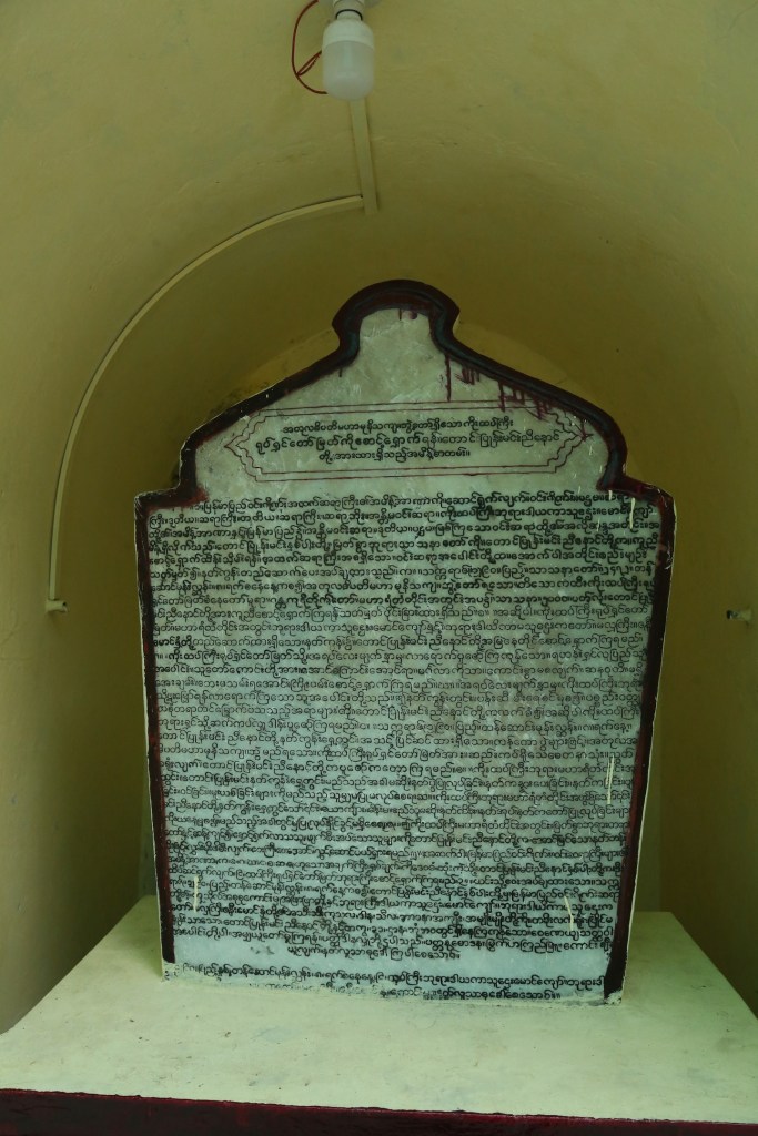 ဂန္ဓကုဋီ တန်ဆောင်း ရုပ်ပွားတော်ကြီးရဲ့ နောက်ဘက် ဗုဒ္ဓဖြစ်စဉ်တော်တွေ ပြသထားတဲ့ ဘေးနံရံ မှာ ကျောက်စာတစ်ချပ်ရှိတယ်။ ဘုရားဖူးအတော်များများ သတိထားမိမယ်မထင်ဘူး။ အဲဒီ ကျောက်စာမှာ “ ကြည့်မြင်တိုင်မြို့ ၊ အတုလာဓိပတိ မဟာမုနိသကျ ဘွဲ့ပံသသော၊ ၉ ထပ်ကြီး ဘုရား နှင့် မိဘနှစ်ပါးတို့ ဂုဏ်ကို အာရုံပြု၍ ၁၂၈၁ ခု သီတင်းကျွတ်လပြည့် ၅ ကြိမ်မြောက် အထူး ကန်တော့ပွဲ အလှုမင်္ဂလာတွင် ဘတ်ကြားသောစာတမ်း” ( မူရင်းသတ်ပုံအတိုင်း) လို့ ခေါင်းစဉ်တပ် ထားတယ်။