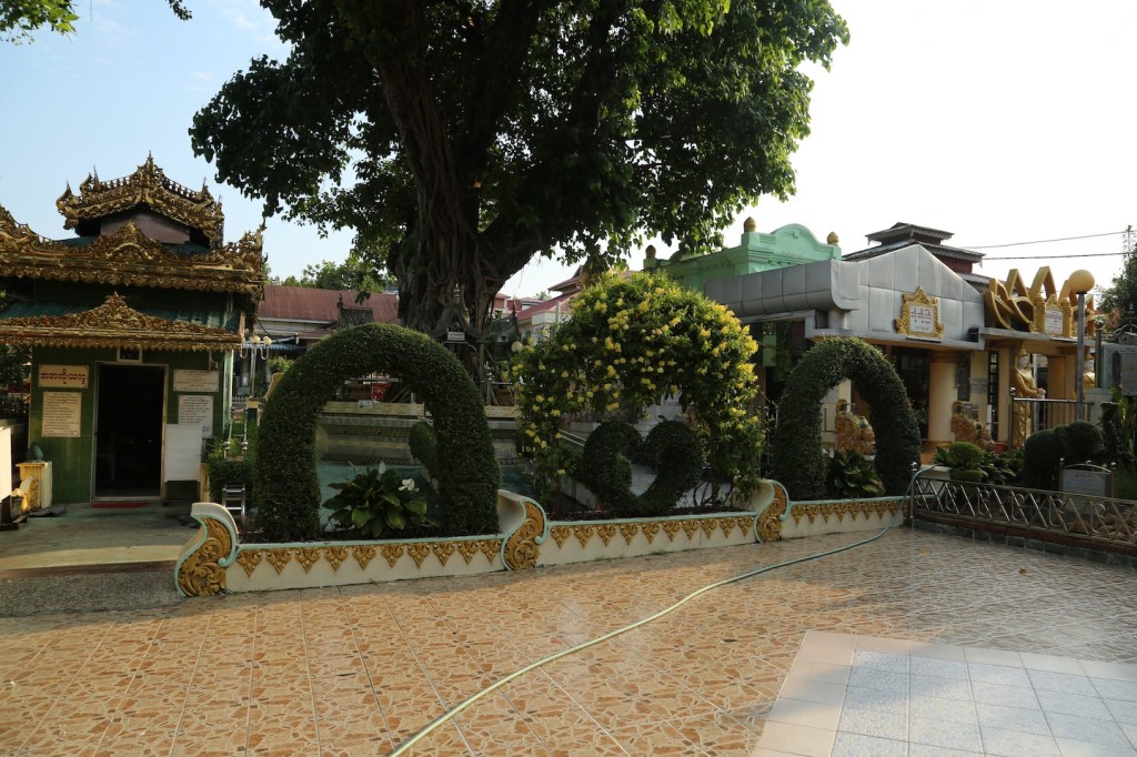 ဘုရားဒါယကာ မောင်ကျော်အလှု ကျောက်စာမှာတော့ ကိုးထပ်ကြီးဘုရားပတ်ဝန်းကျင်မှာ နန္ဒာဝန် ဥယျာဉ်ပမာဆန်းကြယ်စွာသော ပန်းဥယျာဉ်ကို တည်ဆောက်ထားတယ်လို့ပါပေမယ့် အခုတော့ နောက်ပိုင်း အလှုရှင်တွေ လှုဒါန်း ထားတဲ့ သာသနိကအဆောက်အဦတွေ၊ နတ်နန်းတွေ၊ ဈေးတန်း တွေနဲ့ ပြည့်နေတယ်။ ဒါပေမယ့် အဲဒီအဆောက်အဦတွေကြားထဲက ရသမ ျှနေရာလေးမှာ မြေယာ ရှုခင်းကို လှလှပပ ဖန်တီးထား တာလည်း တွေ့ရပါတယ်။ အဲဒီမြေယာရှုခင်းတွေကို ထိန်းသိမ်းပေး နေတာက ဦးကျော်ဝင်းတဲ့။ ၂၀၁၀ ပြည့်နှစ်ထဲက ဒီတာဝန်ကို ထမ်းဆောင်ခဲ့တာ၊ အခုအသက် ခုနှစ်ဆယ်ကျော်နေပြီ။ဘာပဲဖြစ်ဖြစ် မူလ ဘုရားဒါယကာ၊ ဒါယိကာမတွေ ဖြစ်စေချင်တဲ့ ပန်းဥယျာဉ် လေးတစ်ခု ဆက်ရှိနေတာပဲ ကျေးဇူးတင်ရပါတယ်။