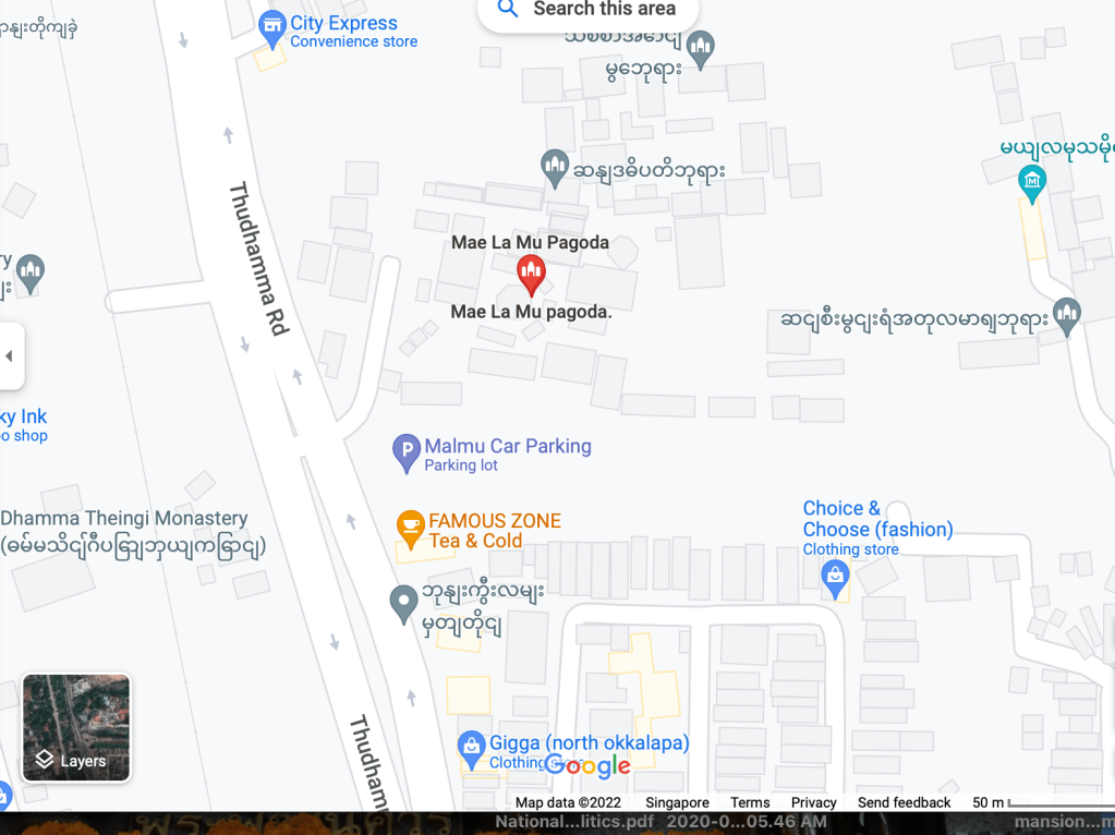 အဲဒီအမျိုးသမီးရုပ်တုက ရွှေတိဂုံဘုရား အထက်ပစ္စယံ စနေထောင့်မှာရှိတဲ့ မယ်လမု ပုံတော် နဲ့ အတူတူဖြစ်နေတယ်။ နောက်မူကွဲတစ်ခုမှာတော့ အလယ်ပစ္စယံ သိကြားမင်း ပုံတော်အောက် မှာ ရှိတဲ့ မယ်လမုပုံ လို့ဆိုတယ်။ ရွှေတိဂုံ ဘုရားမှာရှိတဲ့ မယ်လမု ပုံတော်ကို သိသူများ ဘယ်အချက် မှန်လဲဆိုတာ မှတ်ချက် ရေး ဆွေးနွေးပေးစေချင်ပါတယ်။