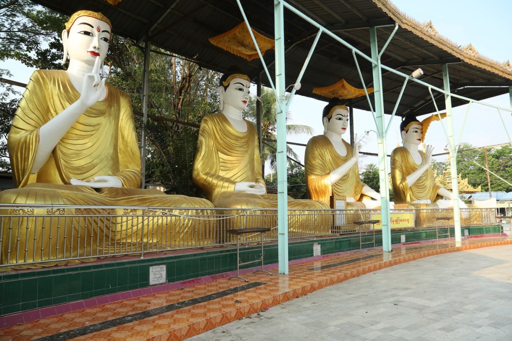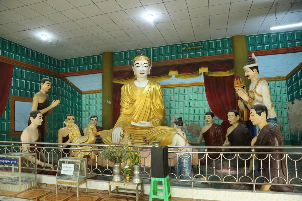 နောက်ထပ် သတိထားမိတာတစ်ခုကတော့ ဘုရား ပရိဝုဏ်အတွင်း မှာ ဈေးဆိုင်တန်းနဲ့ ဗေဒင် ဟောခန်းတွေ အလွန်များတဲ့အချက်ပါပဲ။ မုခ်ဦးကနေ ဝင်လိုက်ရင် ညာဘက် တစ်ခြမ်း အပြည့် နီးနီး ဆိုင်တန်းတွေ၊ ဟောခန်းတွေရှိတယ်။ငမိုးရိပ်ချောင်း ကို ကျောပေးထားပြီး စားသောက်ဆိုင် တွေရှိတယ်။ အဲဒီဆိုင်တွေဆုံးရင် ရှင်ဥပဂုတ္တ ရေကန်တော်ပတ်လည်မှာ ဆိုင်ခန်းတွေရှိတယ်။ ဆိုင်ခန်းတွေကလည်း ရိုးရိုးစတိုးဆိုင်၊ ဘာသာရေးဆိုင်ရာ ပစ္စည်းတွေ ၊ အမှတ်တရ ပစ္စည်းတွေ ရောင်းတဲ့ ဆိုင်၊ ထမင်းဆိုင်၊ စောင်းတန်းဘေးမှ ခင်းထားတဲ့ အသုပ်ဆိုင် အစုံပါပဲ။