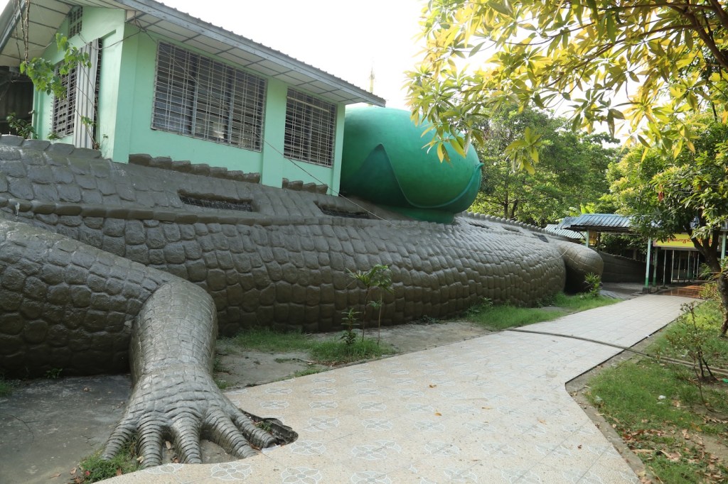 အခု ပြန်ရောက်တော့ မယ်လမု ဘုရားမုခ်ဦးကျော်လိုက်တာနဲ့ မြင်ကွင်းက မယုံနိုင် လောက်အောင် ပြောင်းလဲနေတယ်။ မယ်လမု ဘုရားပရိဝုဏ်က ၁၀.၅၇ ဧက ရှိတယ်လို့ဆိုတယ်။ အဲဒီ ဘုရားပရိဝုဏ်တစ်ခုလုံးမှာ သာသနိ က အဆောက်အဦတွေ၊ အခြားယုံကြည် ကိုးကွယ်မှု ဆိုင်ရာ အဆောက်အဦတွေနဲ့ ပြည့်နေတယ်။ ကျွန်တော် ရေတွက်ကြည့်တာ ၅၅ ခုရှိတယ်။ အများစုကတော့ ဗုဒ္ဓဝင်နဲ့ပတ်သက်တဲ့ ပြခန်း အဆောက်အဦတွေဖြစ်ပါတယ်။ ဒါပေမယ့် ဗုဒ္ဓဝင်ဖြစ်စဉ်တွေကို အစီအစဉ်နဲ့ ရှေ့နောက် ဆက် လေ့လာလို့ရအောင် တည်ဆောက် ထားတာမျိုးတော့မဟုတ်ဘူး။ အလှုရှင်ပေါ်ပေါက်မှုနဲ့ နေရာ ရနိုင်မှုအပေါ်မူတည်ပြီး တည်ဆောက်ထားတဲ့သဘောပါ။ ပန်းပုလက်ရာတွေကလည်း အဆင့်အမျိုးမျိုးပါပဲ။ ဒါပေမယ့် အာရုံခံတန်ဆောင်းတွေ၊ ပြခန်းတွေကို တစ်နေရာကနေ တစ်နေရာ မိုးမစို နေမပူပဲ သွားနိုင်အောင် စောင်းတန်းတွေ တည်ဆောက်ထားတာကတော့ အတော်ကောင်းပါတယ်။ ( ဘုရားပရိဝုဏ် လမ်းညွှန်မြေပုံကို ဖော် ပြထားပါတယ်။ )