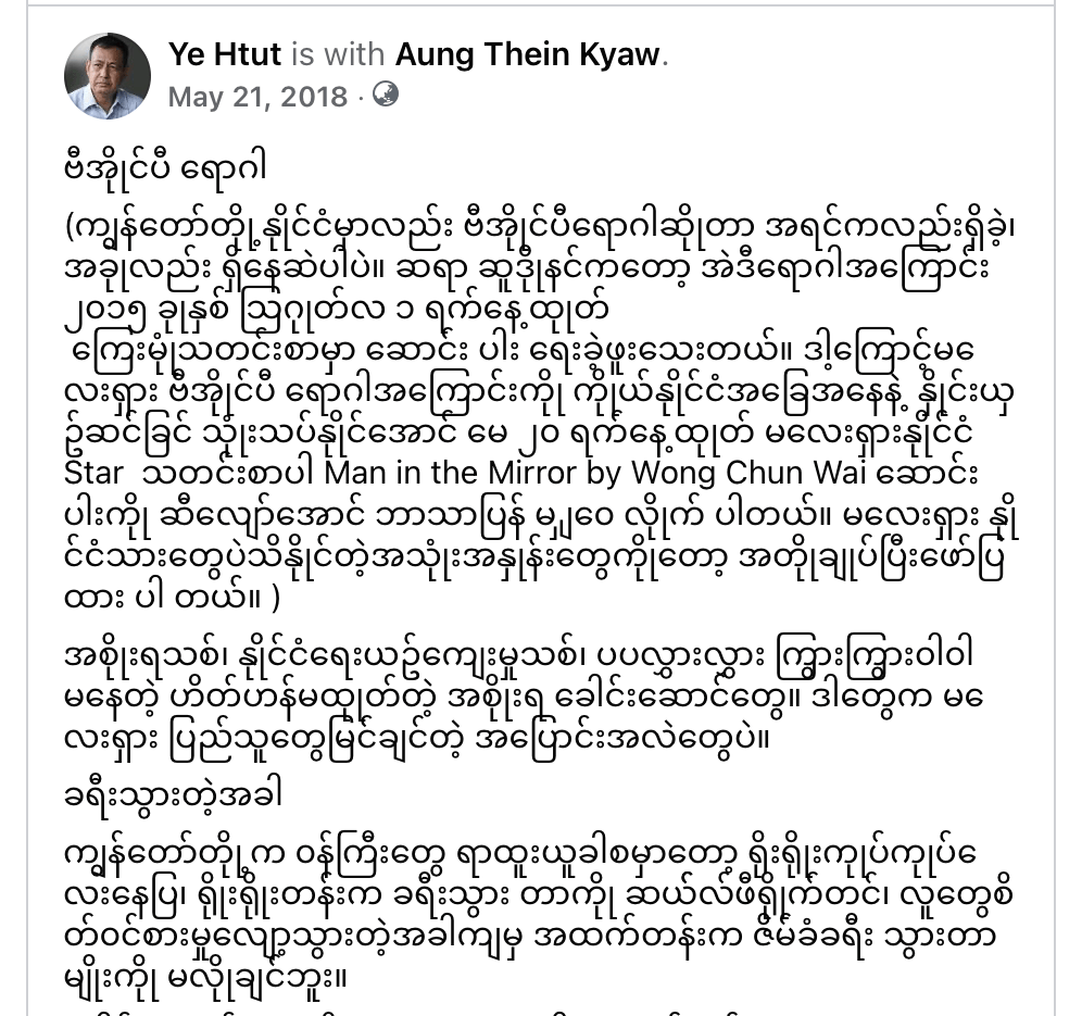 အဲဒီဆောင်းပါးကို ဆီလျော်အောင်ဘာသာပြန် ပြီး ၂၀၁၈ ခုနှစ် မေလ ၂၁ ရက်နေ့ ကျွန်တော့် ဖေ့စ်ဘွတ်စာမျက်နှာမှာဖော်ပြခဲ့တာကို မဖတ်ရသေးသူများအတွက် ပြန်လည်မ ျှဝေပေးလိုက် ပါတယ်။