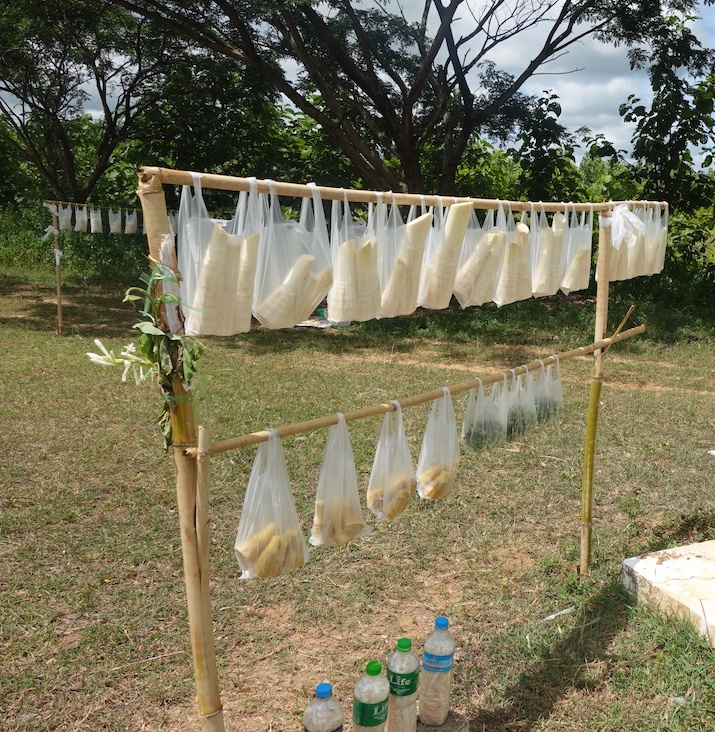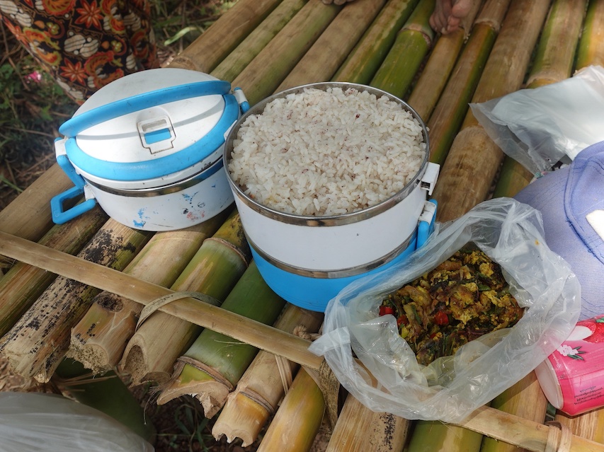 သူတို့ဆိုင်က မ ျှစ်အစိုအထုတ်တော်တော်များများ ဝယ်တဲ့အပြင် အမြန်လမ်းမှာ လိုအပ်ရင် လှုဖို့ ယူလာတဲ့ အစားအသောက်နဲ့ မုန့်တွေကို သူတို့အတွက် လက်ဆောင်ပေးလိုက်တယ်။ အမျိုး သမီးကြီးက ဘာမှလည်း ပြန်ကျွေးစရာမရှိဘူး။ ထမင်းစားသွားပါလားလို့ ဖိတ်တယ်။ ဘာတွေ ချက်တုန်းဗျ လို့ မေးလိုက်တော့ ထမင်းချိုင့်ကို ဖွင့်ပြတယ်။ ဆန်ကြမ်း နှစ်ချိုင့်၊ ကြက်ဥ ၊ ချဉ်ပေါင်ရွက်၊ ဆူးပုတ်ရွက်နဲ့ ငရုတ်သီးတွေရောပြီး ကြော်ထားတဲ့ ဟင်းတစ်ခွက်။