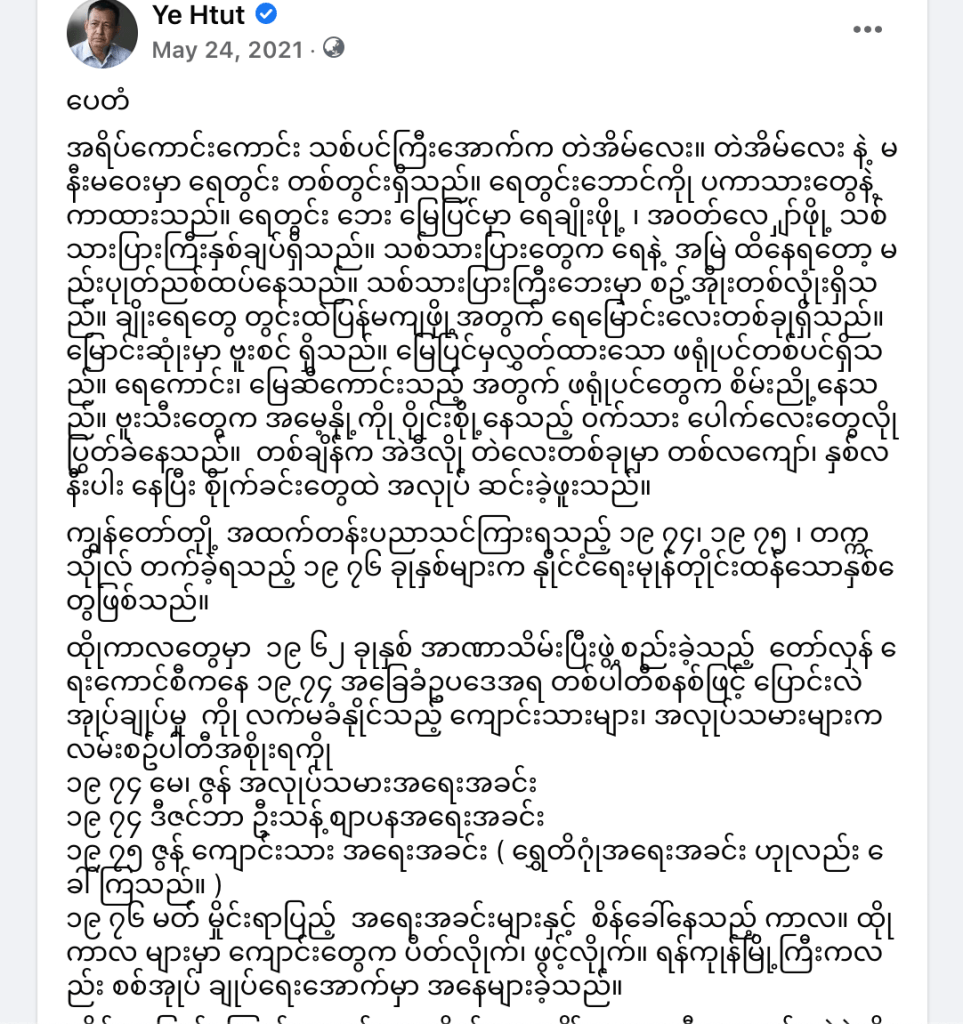 ကျွန်တော်က တော်လှန်ရေးကောင်စီအစိုးရ ကာလမှာ လူလားမြောက်ရတာဆိုတော့ ဆိုရှယ်လစ် စနစ်ပဲကြားဖူး၊တွေ့ဖူးသူဖြစ်သည်။