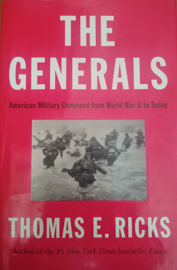 “ The Generals” by Thomas E. Ricks ဆိုတာ ဒုတိယကမ္ဘာစစ်ကနေ အာဖဂန် ၊ အီရတ် စစ်ပွဲ ( ၂၀၁၁ ထိ အခြေအနေ) အထိ စစ်ပွဲတွေမှာ တာဝန်ထမ်းဆောင်ခဲ့တဲ့ အမေရိကန် ကြည်းတပ် ဗိုလ်ချုပ်ကြီး ၃၀ ဦး ရဲ့ စစ်ဘက်ခေါင်းဆောင်မှုအရည်အချင်းတွေကို သုံးသပ်ထားတဲ့ စာအုပ် ဖြစ်ပါတယ်။