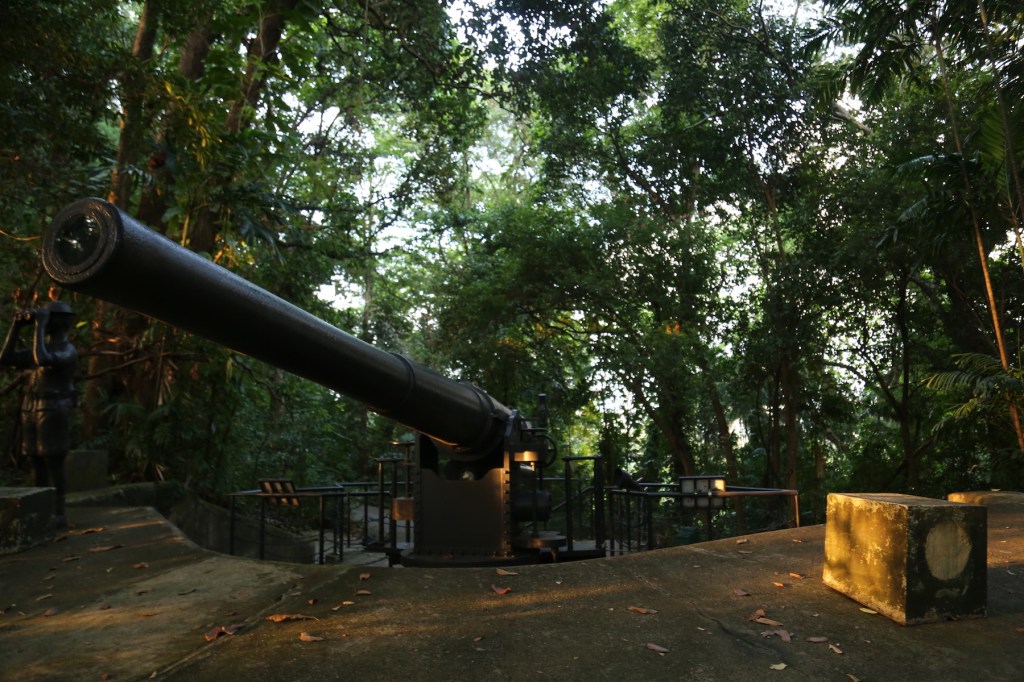 စင်္ကာပူကျွန်းတောင်ဘက်ကမ်းခြေမှာ ရှိတဲ့ Labrador ပန်းခြံမှာ လူအများစုက ကမ်းခြေ တစ် လေ ျှာက်မှာပဲ အပန်းဖြေကြတယ်။ ဒါပေမယ့် နောက်ဘက်က တောအုပ်ထဲကို ဝင်သွားလိုက်မယ် ဆိုရင် တောင်ကုန်းထိပ်မှာ အမြောက်စခန်းဟောင်းတစ်ခုနဲ့ အမြောက်ကြီးတစ်လက်ကို တွေ့လိမ့် မယ်။ အဲဒီတောင်ကုန်းအခြေမှာလည်း ပင်လယ်ဘက်ကို မျက်နှာမူထားတဲ့ စက်သေနတ်ထားတဲ့ အခိုင်အမာ ကွန်ကရစ်ဘန်ကာတွေရှိတယ်။