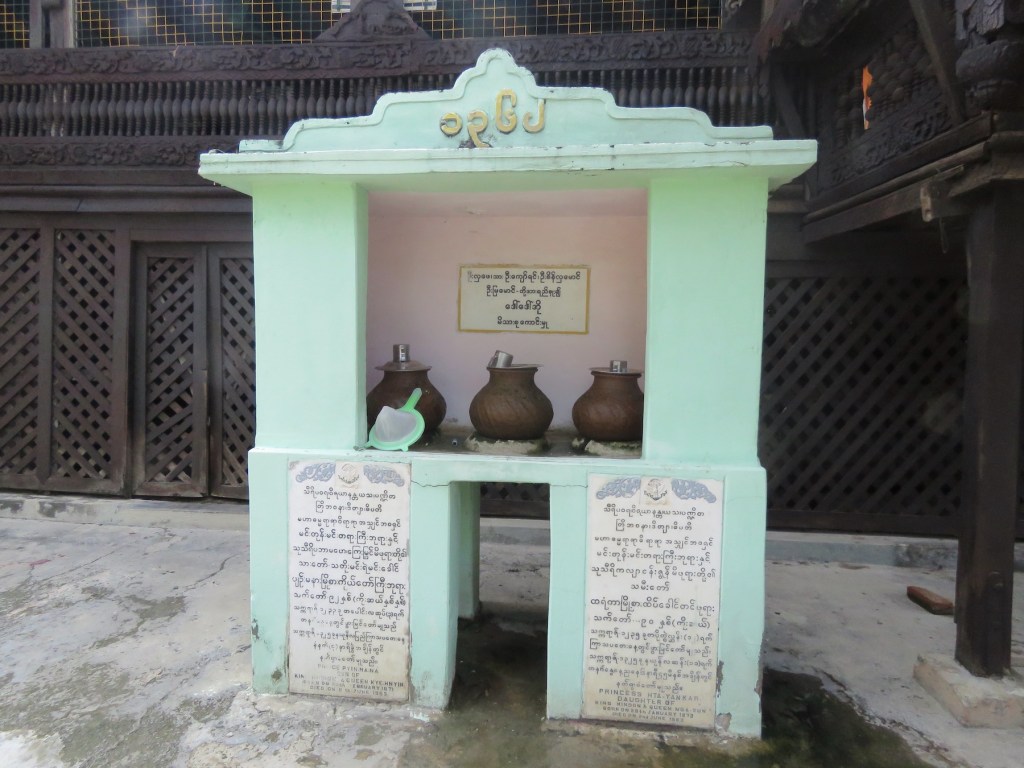 ကြေးမြင်မိဖုရားကျောင်းရှေ့မှာ ထူးထူးဆန်းဆန်း မြင်ခဲ့ရတာက ရေအိုးစင်ရဲ့ အောက်ခြေ ဘယ် ညာက သင်္ချ ိုင်းကျောက်စာနှစ်ချပ်ဖြစ်ပါတယ်။ ကျောင်းဘက်ကို မျက်နှာမူကြည့်လိုက်ရင် ဘယ် ဘက်အခြမ်းမှာက “မင်းတုန်းမင်း နဲ့ ကြေးမြင်မိဖုရားတို့ရဲ့ သားတော် ပျဉ်းမနားမြို့စား ကိုယ်တော် ကြီးဘုရား ( ၉ ၂ နှစ် )” ကျောက်စာဖြစ်ပါတယ်။ ညာဘက်ကတော့ “ မင်းတုန်းမင်း နဲ့ ငန်းဇွန် မိဖုရားတို့ရဲ့ သမီးတော် ထရံကာမြို့စား ထိပ်ခေါင်တင်ဖုရား ( ၉ ၀ နှစ်)” ကျောက်စာ ဖြစ်ပါတယ်။ ကွယ်လွန်တဲ့ ရက်က ၁၃၂၅ နယုန်လပြည့် နဲ့ ၁၃၂၅ နယုန်လဆန်း ၁၁ ရက်ဆိုတော့ လေးရက်ပဲ ခြားပါတယ်။ ဆရာတော်မရှိတဲ့အတွက် ကျောက်စာတွေရဲ့ ရာဇဝင်ကိုတော့ မမေးခဲ့ရဘူး။( စာ အပြည့် အစုံကို ဓာတ်ပုံ အမှတ်စဉ် ၁၄ မှာကြည့်ပါ။)
