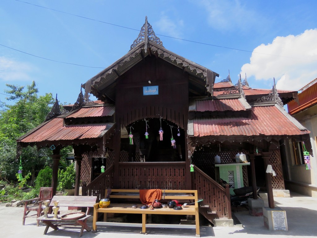 မိုးကောင်းကျောင်းကလည်း ခြေတံရှည်ကျောင်းပါပဲ။ ကျောင်းတိုက်အဝင်လမ်း ညာဘက် အခြမ်းမှာ ရှိတယ်။ ရမည်းသင်းကျောင်းထက်တော့ အရွယ် အစားသေးတယ်။ လှေကားတစ်စင်းပဲရှိတယ်။ လှေကားက နှစ်ဆင့်၊ ပထမအဆင့်မှာ ဘယ်ညာ လှေကားနှစ်စင်းရှိတယ်။ ပြီးရင် လှေကားတစ်စင်း ထဲရှိပြီးရှေ့တည့်တည့်က တက်ရတယ်။ အတွင်း မှာ ရမည်း သင်းကျောင်းလိုပဲ မှန်စီရွှေချတံခါး တွေ နဲ့ ကာထားတဲ့ အခန်းရှိတယ်။ ရမည်းသင်း ကျောင်းမှာတော့ အဲဒီအခန်းထဲမှာ သံဃာတွေ သီတင်း သုံးတာမရှိဘူး။မိုးကောင်းကျောင်းမှာတော့သံဃာတွေသီတင်းသုံးတယ်။မှန်စီရွှေချလက်ရာ တွေက လည်း ရမည်းသင်းကျောင်းက လက်ရာ တွေ လိုပဲ အရောင်မှိန်နေပြီ။ တစ်ချို့ရွဲလုံးတွေ ပြုတ်ထွက် နေပြီ။