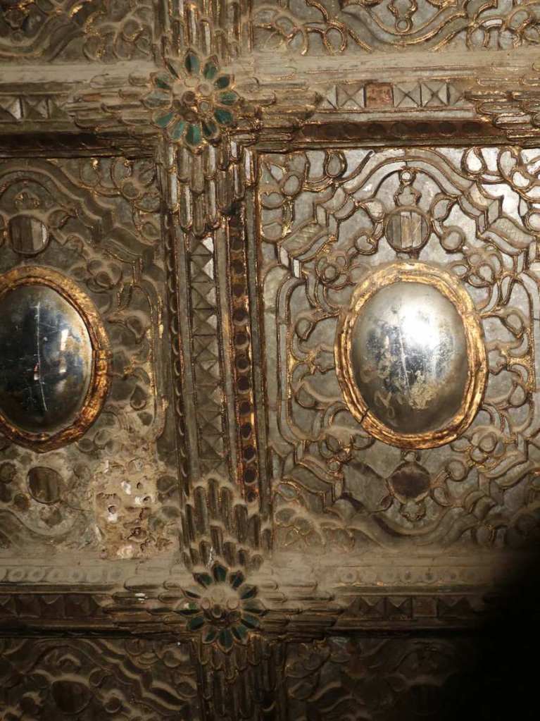ရမည်သင်းကျောင်းရဲ့ နောက်ပိုင်းမှာ မှန်စီရွှေချ တံခါးတွေနဲ့ ကာထားတဲ့ အခန်းရှိတယ်။ အဲဒီ အခန်းကို အသုံးမပြုဘူး။ ပိတ်ထားတယ်။ မှန်စီရွှေချလက်ရာတွေကို ကိုင်ကြည့်လို့မရအောင် ရှေ့မှ ဒူးပိတ်ချထားတယ်။ မှန်စီရွှေချလက်ရာတွေကတော့ အတော်အနုစိတ်တယ်။ ပညာရှင်မဟုတ်တဲ့ အတွက် အသေးစိတ်တော့မသုံးသတ်နိုင်ဘူး။ စိတ်မကောင်းစရာကတော့ နှစ်နှစ်ရာကျော်ပြီ ဖြစ် တဲ့အတွက် မှန်စီရွှေချလက်ရာတွေက အတော်အရောင်မှိန်နေပြီ။ ထိလိုက်ရင် ကြွေကျတော့မယ့် အခြေအနေ ဖြစ်နေပြီ။ မှန်စီရွှေချလက်ရာတွေကြားထဲမှာ ထည့်ထားတဲ့ မှန်ချပ်ကြီး တချို့ မရှိတော့ဘူး။