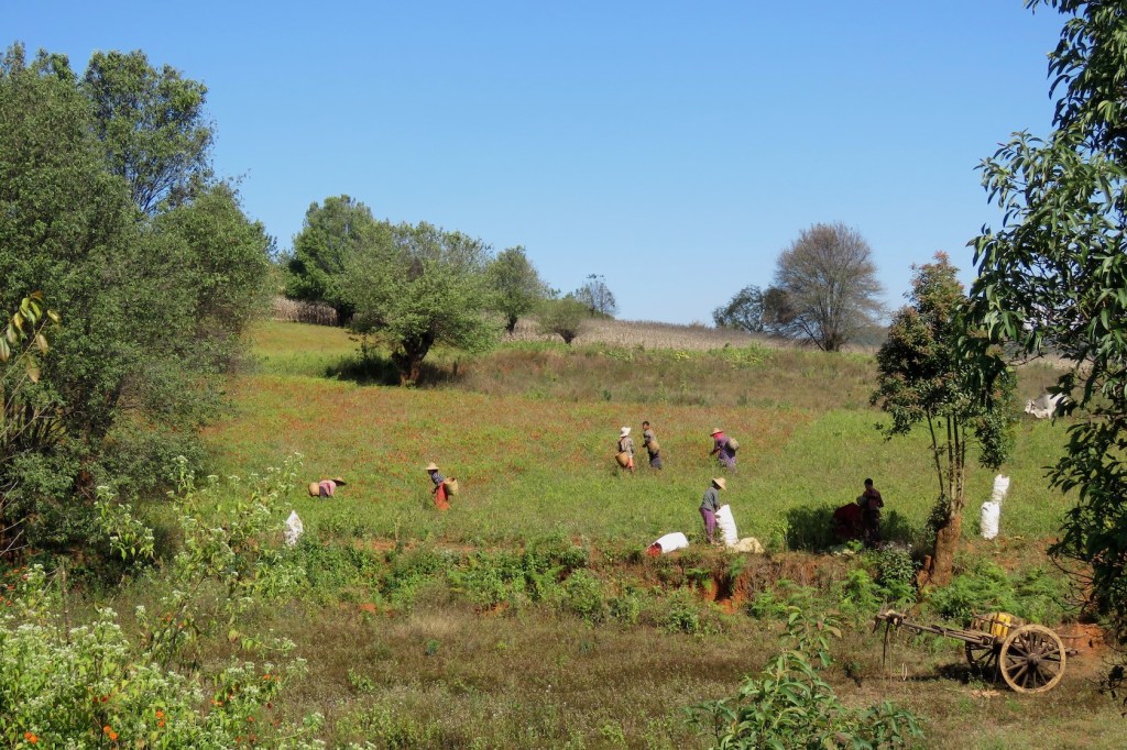 ဒါပေမယ့် ဒီနှစ်မှာတော့ အဲဒီလို မဟုတ်ဘူး။ ဈေးကွက်အခြေအနေအရ ( ကြက်စာ) ပြောင်း နဲ့ ငရုတ်စိုက်ခင်းတွေပဲစိုက်တာများပြီး ပြောင်းခင်းတွေက ရင့်ပြီးချိုးရမယ့်အချိန်ရောက်နေတော့ အညိုရောင်ဖြစ်နေပြီ။ ဒီတော့ ရှုခင်းက ထင်သလောက်မလှတော့ဘူး။