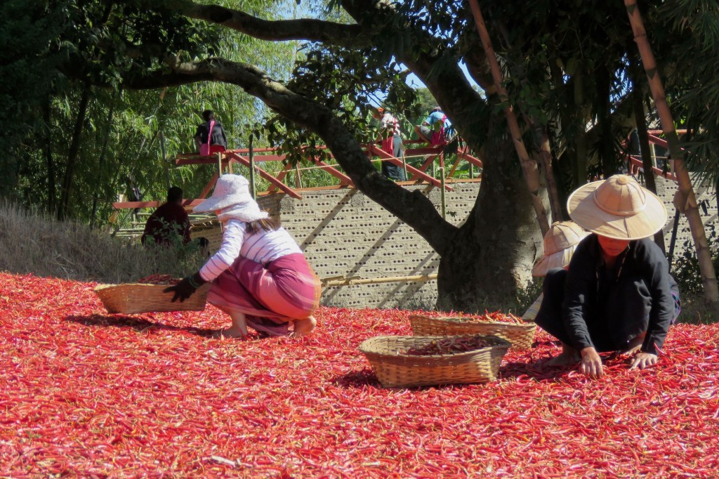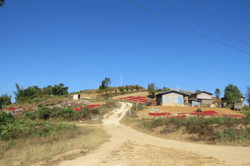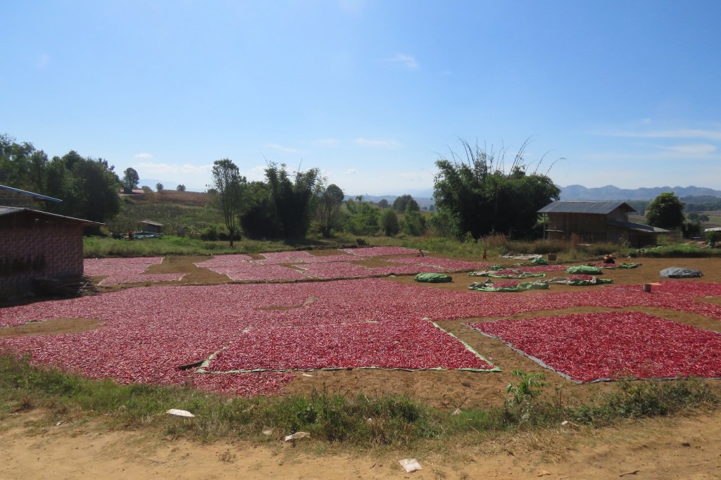 ပင်နွေးနဲ့ ပေါ်ကဲရွာတွေက ငရုတ်အဓိက ထားစိုက်တဲ့ရွာတွေ၊ အိမ်တိုင်းလိုလို ငရုတ်သီးတွေ နေ လှန်းထားတဲ့အတွက် ရွာထဲဝင်လိုက်တာနဲ့ ငရုတ်သီးနံ့ မွှန်နေတာပဲ။ ပွဲရုံပို့ဖို့အတွက် ကားတင် နေတာလည်း မြင်ရတယ်။ ငရုတ်ရွေးနေတဲ့ အမျိုးသမီး တွေလည်း တွေ့ခဲ့ရတယ်။ ဒီနှစ် ငရုတ်ဈေး က စဖွင့်တော့ နှစ်သောင်းဈေး၊ အခု တစ်သောင်းငါးထောင်ဈေး၊ ဈေးနည်းနည်းကျပေမယ့် ကိုက် သေးတယ်လို့ ပြောတယ်။