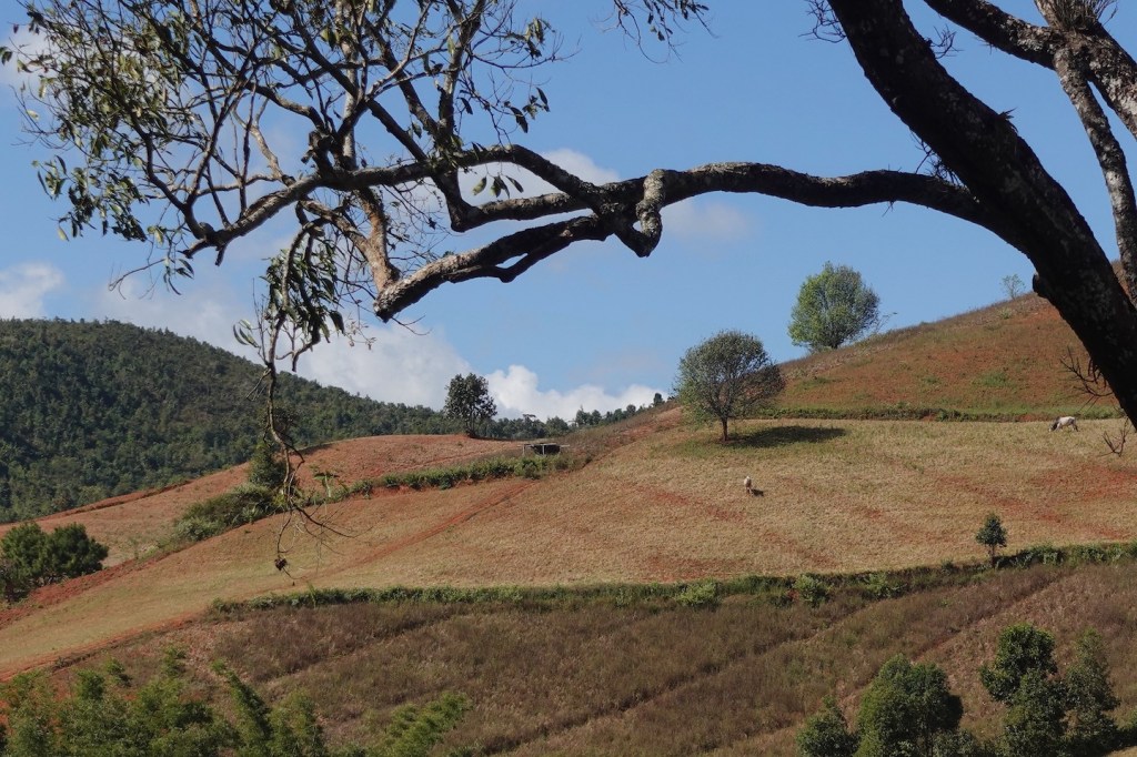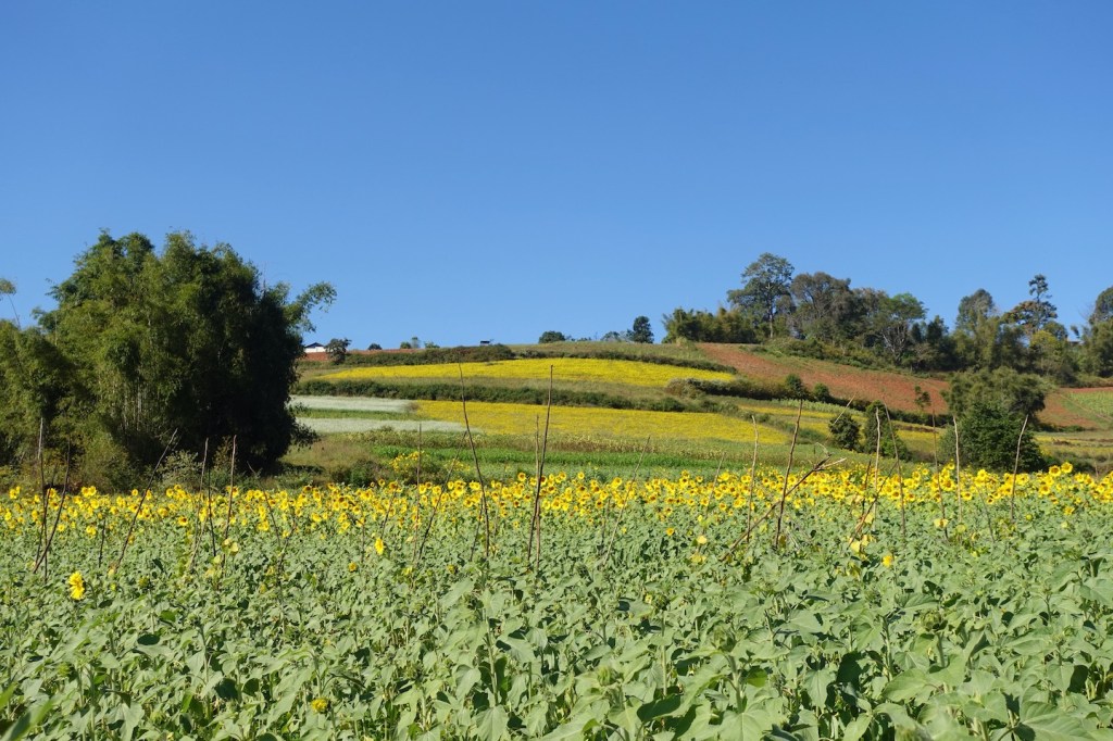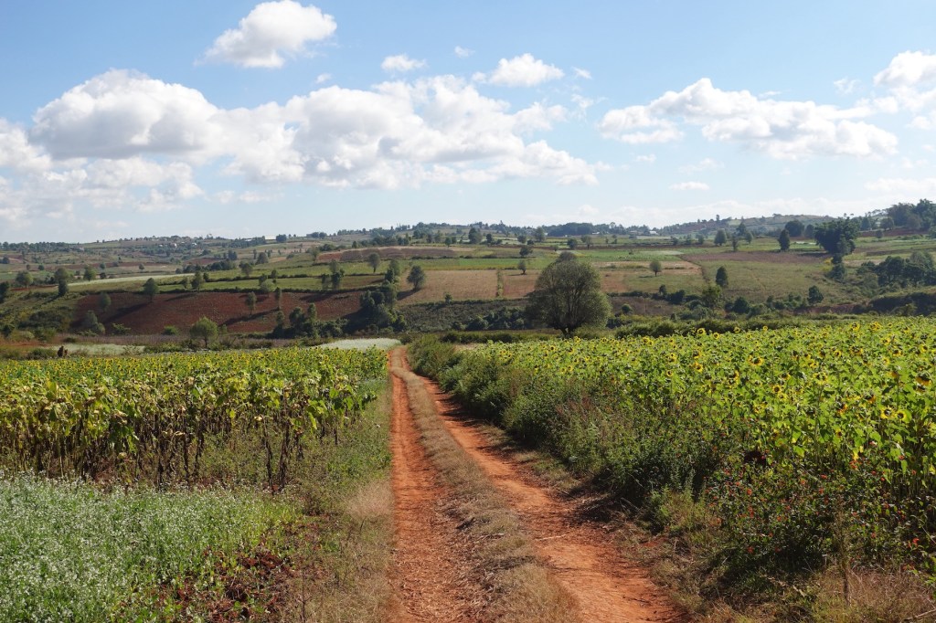 ကလော – အင်း လေး ခြေလျင်ခရီးစဉ်မှာ ဒီနှစ် တောင်သူတွေ စိုက်တဲ့ သီးနှံအမျိုးအစားပြောင်း သွားတဲ့အတွက် အရောင်စုံတဲ့ သီးနှံစိုက်ပျိုးခင်းဓာတ်ပုံတွေ မရိုက်နိုင်ခဲ့ဘူး။ ဒါ့ကြောင့် ကလော ပြန်ရောက်တဲ့အခါ အဲဒီလို စိုက်ခင်းတွေရှိတဲ့ ရွာငံလမ်းက မြင်းမူကုန်းကို သွားဖို့ စီစဉ်တယ်။ ဒါ ပေမယ့် ကလောမှာ တစ်ရက်ပဲနေပြီး သွားချင်တဲ့နေရာတွေက များနေတော့ လမ်းညွှန် ကိုမျိုးဇော် က အောင်ပန်းနားက “ သူလဲ ဥမင်” ကို သွားတဲ့ လမ်းမှာလည်း ဓာတ်ပုံရိုက်လို့ ကောင်း တဲ့ စိုက်ခင်းတွေရှိတယ်။ အဲဒီကို သွားပါလားလို့ အကြံပေးတယ်။