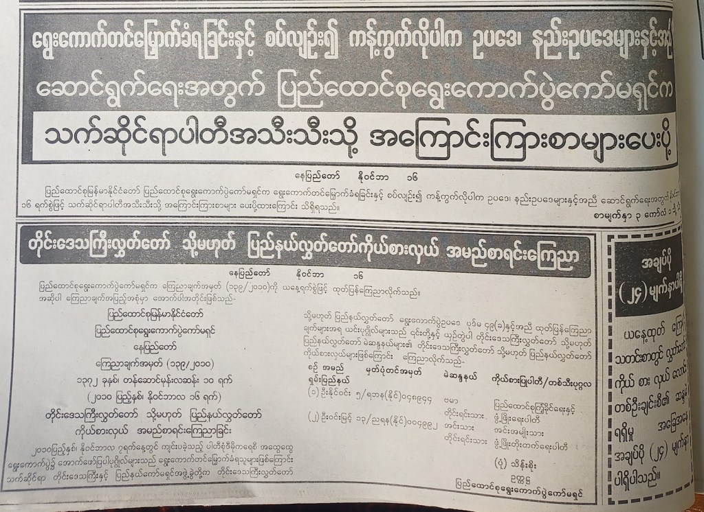 နောက်ဆုံးတော့ ရွေးကောက်ပွဲကော်မရှင်က နိုဝင်ဘာလ ၁၆ ရက်စွဲနဲ့ နိုင်ငံရေးပါတီတွေကို ရွေးကောက်ပွဲနဲ့ပတ်သက်ပြီး ကန့်ကွက်ချင်တယ်ဆိုရင် ရွေးကောက်ပွဲ ဥပဒေနဲ့ အညီ ရွေး ကောက်ပွဲ ကော်မရှင်ကို လေ ျှာက်ထား ကန့်ကွက်ပါ၊ အဲဒီလို မလုပ်ဘဲ မီဒီယာတွေကို ပြောဆိုခြင်း၊ ရေးသားခြင်းများပြုလုပ်နေရင် ရွေးကောက်ပွဲ ဥပဒေနဲ့ငြိစွန်းနေတယ်ဆို ပြီး သတိပေး ခဲ့တယ်။ ( ပုံ ၁ နဲ့ ၂ )