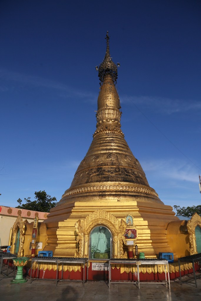 တံတားအလွန်မှာလှေကားက အတက်မတ်တယ်။ လှေကားအဆုံးမှာ “ ရွှေအင်ဒုံစခန်း” ရှိတယ်။ တောင်ခြေနဲ့ ရွှေအင်ဒုံစခန်းကြားမှာ အောက်ဘက် က မြေပြန့်လွင်ပြင်နဲ့ ဇွဲကပင်တောင်တန်းကြီး ကိုလှမ်းမြင်ရတဲ့ ရှုခင်းလှပြီး ဓာတ်ပုံရိုက်လို့ ကောင်းတဲ့နေရာတွေရှိတယ်။ မင်းသမီးအေးမြတ်သူနဲ့ သင်ဇာဝင့်ကျော်တို့ ဓာတ်ပုံရိုက်ဖူးလို့ဆို ပြီး သူတို့နာမည်တွေပေးထားတဲ့ နေရာနှစ်ခုလည်း တွေ့ ခဲ့ရတယ်။