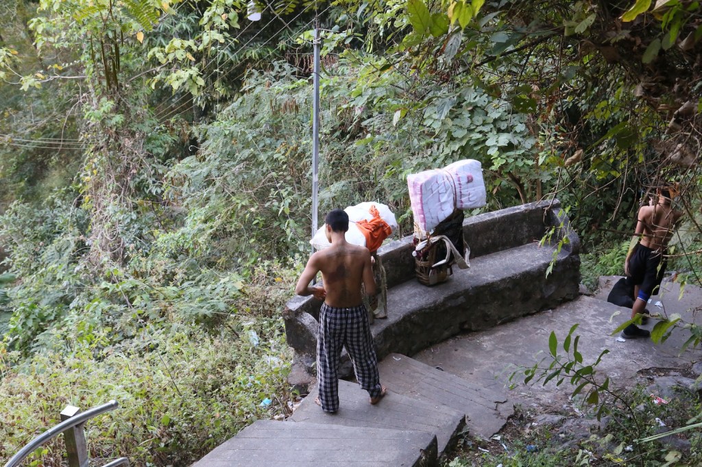 စတက်ပြီး မကြာခင်မှာပဲ တောင်ပေါ်က ဆင်းလာတဲ့ အဖွဲ့တစ်ဖွဲ့နဲ့ဆုံတယ်။ အဲဒီထဲက ဦးလေး ကြီးတစ်ယောက်က အသက် ၆၇ နှစ်၊လေဖြန်းထားလို့ ခြေထောက် နည်း နည်းဆိုင်းနေတာတောင် တောင်ပေါ်ရောက်အောင် တက်ခဲ့ပြီး ပြန်ဆင်းလာပြီ။ အတက်က ပြဿနာ မရှိဘူး၊ နားနားပြီး တက်သွားတာ၊ အခု အဆင်းကျတော့ ဘေးကထိန်းပေးရတယ်လို့ ပြော တယ်။ သူ့ကို ကြည့်ပြီး ဆက်တက်ဖို့အားရှိသွားတယ်။ဘယ်မြို့ကလဲလို့မေးတော့ဧရာဝတီတိုင်းကျောင်းကုန်းမြို့တဲ့။အဖွဲ့ ထဲက အမျိုးသမီးငယ် တစ်ယောက်က ဆရာမ ပုညခင် တို့မြို့ဆိုပြီး ထပ်ဖြည့် ပြော တယ်။ တချို့ မြို့တွေက သူတို့ မြို့သူမြို့သားအတွက် ဂုဏ်ယူနိုင်တယ်။ တချို့မြို့တွေကျတော့ အဲဒီ လောက် ကံမကောင်းပြန်ဘူး။