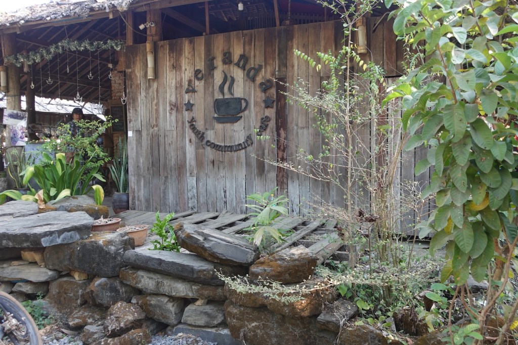 ဒီဆိုင်လေးကို တစ်ယောက်ယောက်က ညွှန်းလို့ သွားခဲ့တာမဟုတ်ဘူး။ ပြည်ထောင်စု ရပ်ကွက် ထဲမှာ ရှိတဲ့ အမိုးအိမ်က အပြန်မှာ အမှတ်မထင်တွေ့ခဲ့တာ။ ပထမ ကော်ဖီဆိုင်မှန်း မသိဘူး။ အဆောက်အအုံ ဟောင်းဟောင်းတစ်ခု၊ ကျောက်တုံးကြီးတွေနဲ့ လုပ်ထားတဲ့ ခြံစည်းရိုး၊ ရှေ့ မှာ ထောင်ထားတဲ့ သစ်သားတိုင်ကောက်ကောက်ကွေးကွေးနဲ့ လမ်းညွှန်မှတ်တိုင်တွေကို သတိ ထားမိပြီး ဘာပါလိမ့်ဆိုတဲ့ သိချင်စိတ်နဲ့ ဝင်သွားခဲ့တာပါ။ ဆိုင်အပေါက်ဝနားနီးမှ ညာဘက် သစ် သားနံရံမှာ အမည်းရောင်နဲ့ရေးထားတဲ့ ဆိုင်နာမည်ကို တွေ့ရတယ်။ ဆိုင်းဘုတ်က အရောင်မှိုင်း မှိုင်း၊ နောက်ခံကလည်းသစ်သားအဟောင်းဆိုတော့ အဝေးက မြင်ဖို့မလွယ်ဘူး။