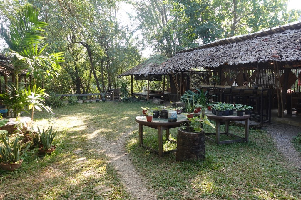 ဒီဆိုင်လေးကို ရှေ့က ကြည့်ရင် မှုန်ကုပ်ကုပ် နဲ့ ဆွဲဆောင်မှု မရှိ ပေမယ့် ဆိုင်နောက်ဘက်ကို ရောက်သွားရင် သစ်ပင်၊ ဝါးပင်တွေကြားမှာ စားပွဲ၊ ကုလားထိုင် ဟောင်းတွေ၊ သစ်သား ပြား ကြီးတွေ၊ ကျောက်တုံးကြီးတွေ နဲ့ ပြင်ဆင်ထားတဲ့ ဆိုင်အခင်းအကျင်းကို မြင်ပြီး “ ဝိုး ” ဆိုတဲ့ အာမေဍိတ်သံ ထွက်ပေါ်လာမှာ သေချာတယ်။