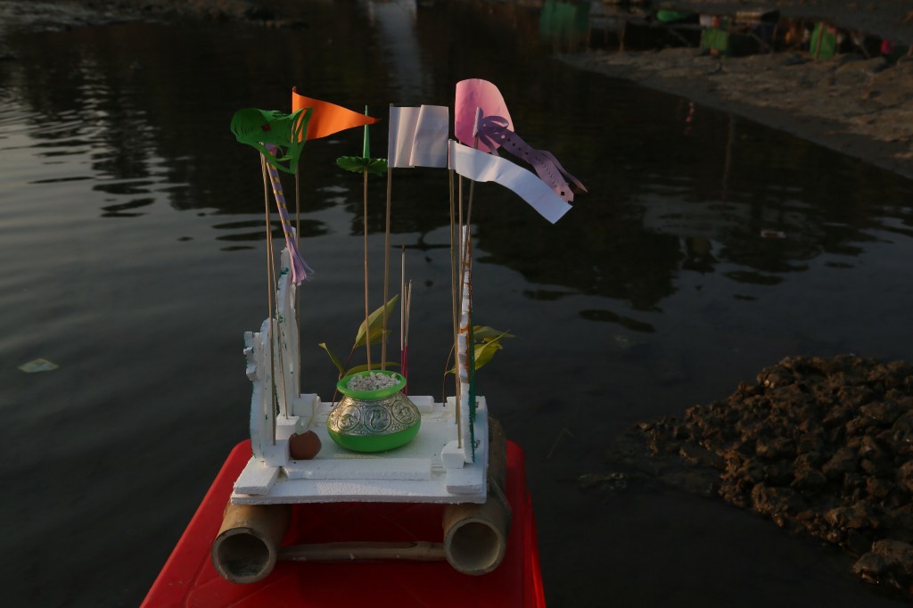 ရေစပ်ကို ရောက်ရင် ဖောင်တော်ကို အသင့်ယူလာတဲ့ ပလတ်စတစ်ခုံပေါ်မှာတင်တယ်၊ အမွှေး တိုင် ထွန်းတယ်။ အလှူရှင်တွေကတော့ ဖောင်တော်ကို ဝိုင်းပြီး ရပ်နေရတာပေါ့။ အားလုံး အသင့် ပြင် ပြီးတဲ့အခါ ပူဇော်ပသတဲ့သူက အလှူရှင်ရဲ့ နေ့နံကို မေးတယ်။ ပြီးရင် ဘုရားရှိခိုးတယ်။ ပြီးတာနဲ့