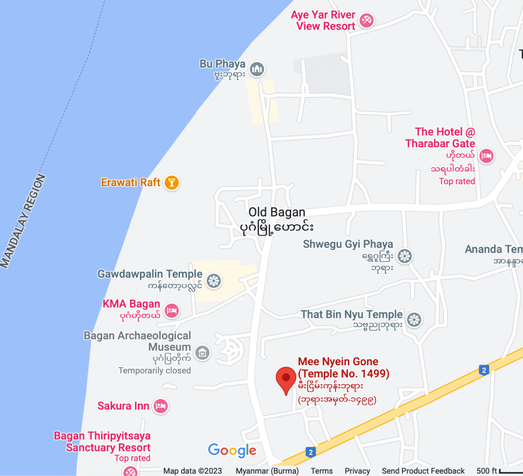 မြင်းပြဂူဘုရားကို သွားမယ်ဆိုရင် ပုဂံမြို့ဟောင်းကနေ ကားလမ်းအတိုင်း ပုဂံပြတိုက်ဘက်ကို သွားပါ။ ပုဂံပြတိုက်ကို လွန်တာနဲ့ လမ်းဘယ်ဘက်မှာ မီးငြိမ်းကုန်းဘုရား ( ဘုရားအမှတ် ၁၄၉၉) ကို သွားတဲ့ လမ်းခွဲကို တွေ့ပါ့မယ်။ အဲဒီလမ်းခွဲအတိုင်းဝင်သွားရင် မီးငြိမ်းကုန်းဘုရားနဲ့ မျက်စောင်း ထိုး မှာ မြင်းပြဂူဘုရားကို တွေ့ပါ့မယ်။ ( မြေပုံလည်း တင်ပေးထားပါတယ်။)