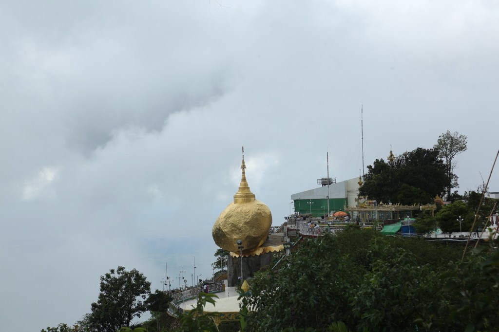 ကျွန်တော်တို့လမ်းပြက အထမ်းသမားကပ်ပြားမရှိတဲ့အတွက် ကားရပ်နားကွင်းကို ကျော်လို့ မရဘူး။ သူ့မိတ်ဆွေ အထမ်းသမားတစ်ယောက်နဲ့ချိတ်ပြီး ပစ္စည်းလွှဲပေးတယ်။ ကားရပ်နား စခန်းကျော် တာနဲ့ ခြေလျင်တောင်တက်ခရီးရဲ့ အခက်ခဲဆုံးအပိုင်းနဲ့ ရင်ဆိုင်ရပြီ။ လာပါ ယူပါ စားပါ ဝင်ကြည့်ပါ ခေါ်သံ တွေကို ဥပက္ခာပြု၊ ပုတီးလေးတွေ အတင်းထိုးပေးနေတဲ့ ကလေး တွေကို ရှောင်လင် သိုင်း၊ လေပွေသိုင်းတွေနဲ့ ကျော်ဖြတ်၊ အထဲ မဝင်ရင် အပြစ်ရှိမယ့် သဘော ပြောနေသူ တွေ ကို လျစ်လျူရှု ၊ အားလုံးကို ကျော်ဖြတ်နိုင်တဲ့အခါ ဘုရားရင်ပြင်တော် ပေါ်ကို ရောက်ပါပြီ။ ရင်ပြင်တော်ပေါ်ရောက်တဲ့အထိ ခရီးသွားချိန် ၅ နာရီ ၅၂ မိနစ်ကြာတယ်။ လမ်း