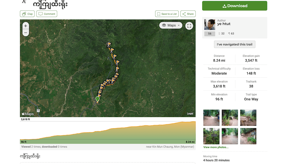 လေ ျှာက်တဲ့အချိန်က ၄ နာရီ ၂၀ မိနစ်ရှိပါတယ်။ ကျန်တာက စား၊ နား ၊ ဓာတ်ပုံရိုက်ချိန်ပေါ့။