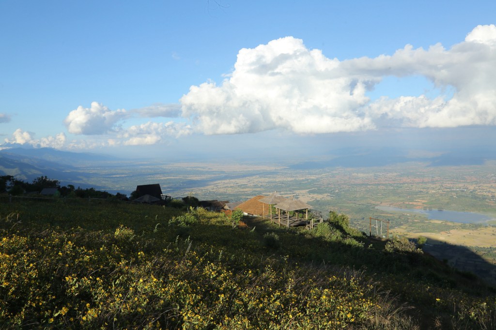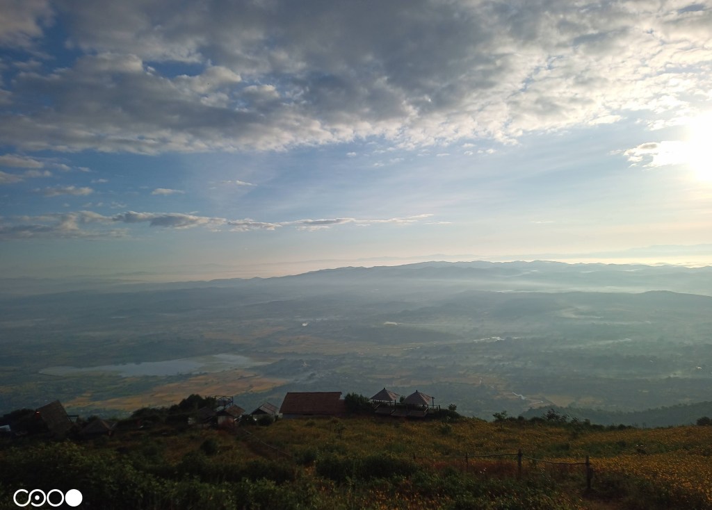 ဝင်ကြေးပေး၊ ကော်ဖီ မှာသောက်ပြီး ခဏထိုင်တယ်။ ရှုခင်းကတော့ တကယ်လှပါတယ်။ စိုက်ခင်း တွေ၊ တောင်ပေါ်ရွာလေးတွေ၊ အဆင့်ဆင့်ထပ်နေတဲ့ တောင်ကြောတွေ။ နေဝင်ဆည်းဆာဆိုရင် ပို လှမှာပေါ့။ ဒါပေမယ့် ဓာတ်ပုံအလှရိုက်ဖို့လုပ်ထားတဲ့ အပြင်အဆင်တွေကြောင့် သဘာဝရှုခင်း သာ ကို ရောက်နေတယ်လို့မခံစားရဘူး။ ဓာတ်ပုံ စတူဒီယိုထဲရောက်နေတယ်လို့ပဲ ခံစားရ တယ်။