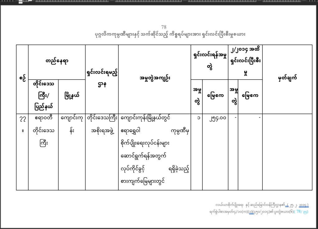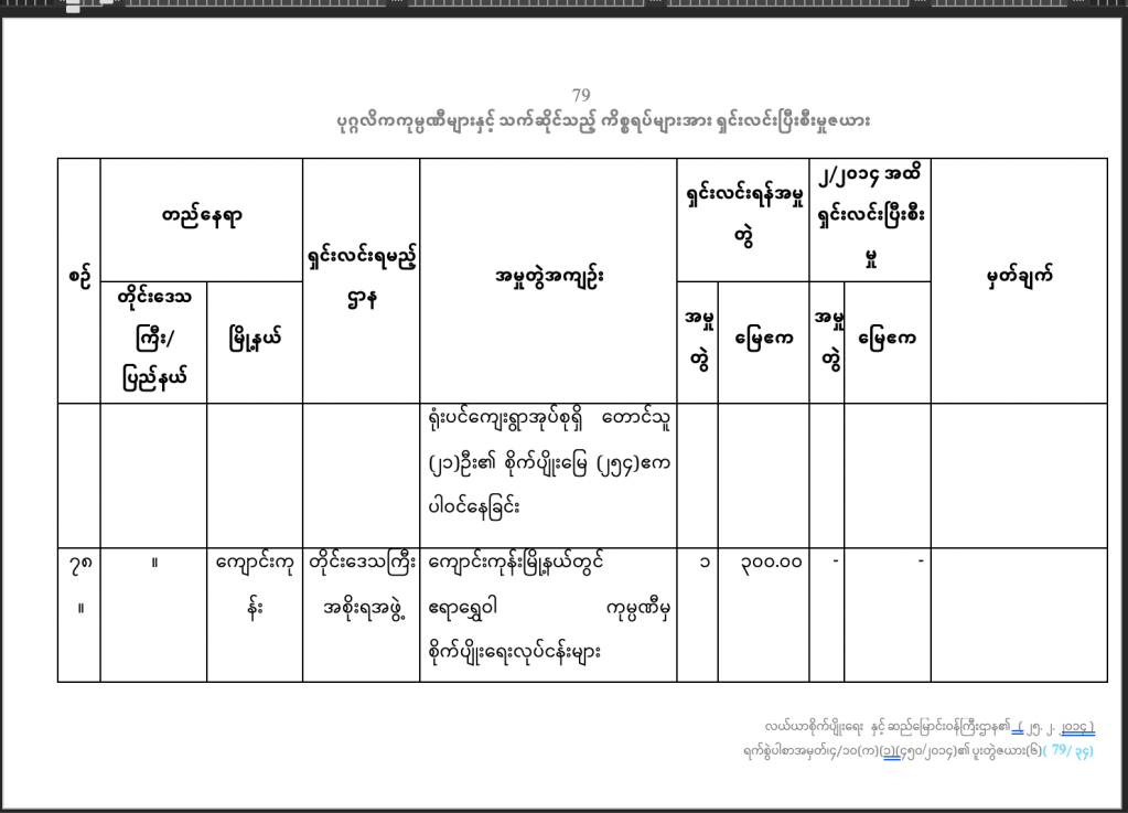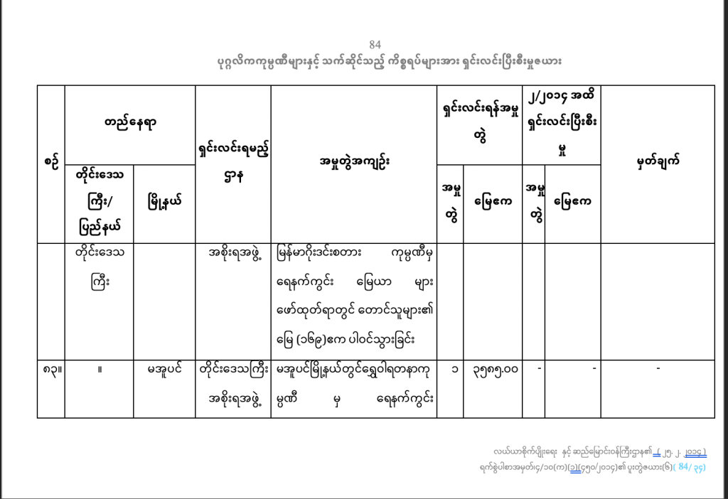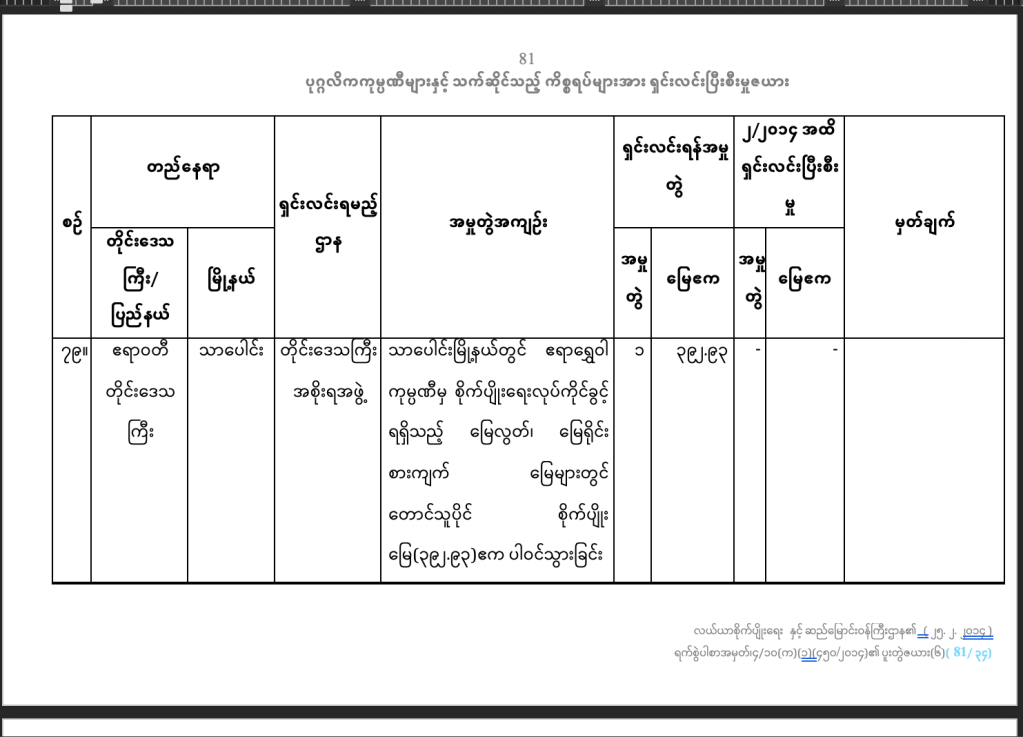 (စီမံချက်ကိုယူနက်စကို ဝက်ဘ်ဆိုက် https://whc.unesco.org/en/list/1588/documents/ မှာယူလို့ရပါတယ်။၂၀၁၉ခုနှစ်ဥပဒေကို https://www.mlis.gov.mm မှာ ယူလို့ရပါတယ် )